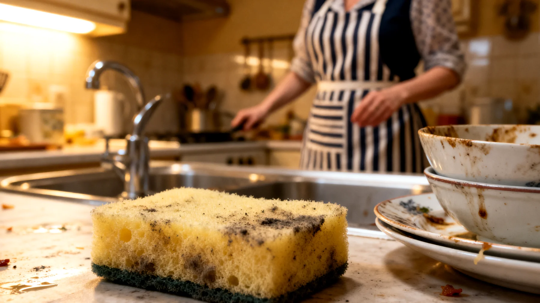 Ces mauvaises odeurs ne sont pas uniquement désagréables, elles signalent aussi un problème hygiénique potentiellement plus grave. Les éponges contaminées peuvent transférer les bactéries sur d’autres surfaces, transformant les comptoirs et les ustensiles de cuisine en points chauds microbiens. Le phénomène de contamination croisée, largement documenté dans la littérature scientifique sur la sécurité alimentaire, trouve dans l’éponge de cuisine l’un de ses vecteurs les plus efficaces et les plus insoupçonnés.